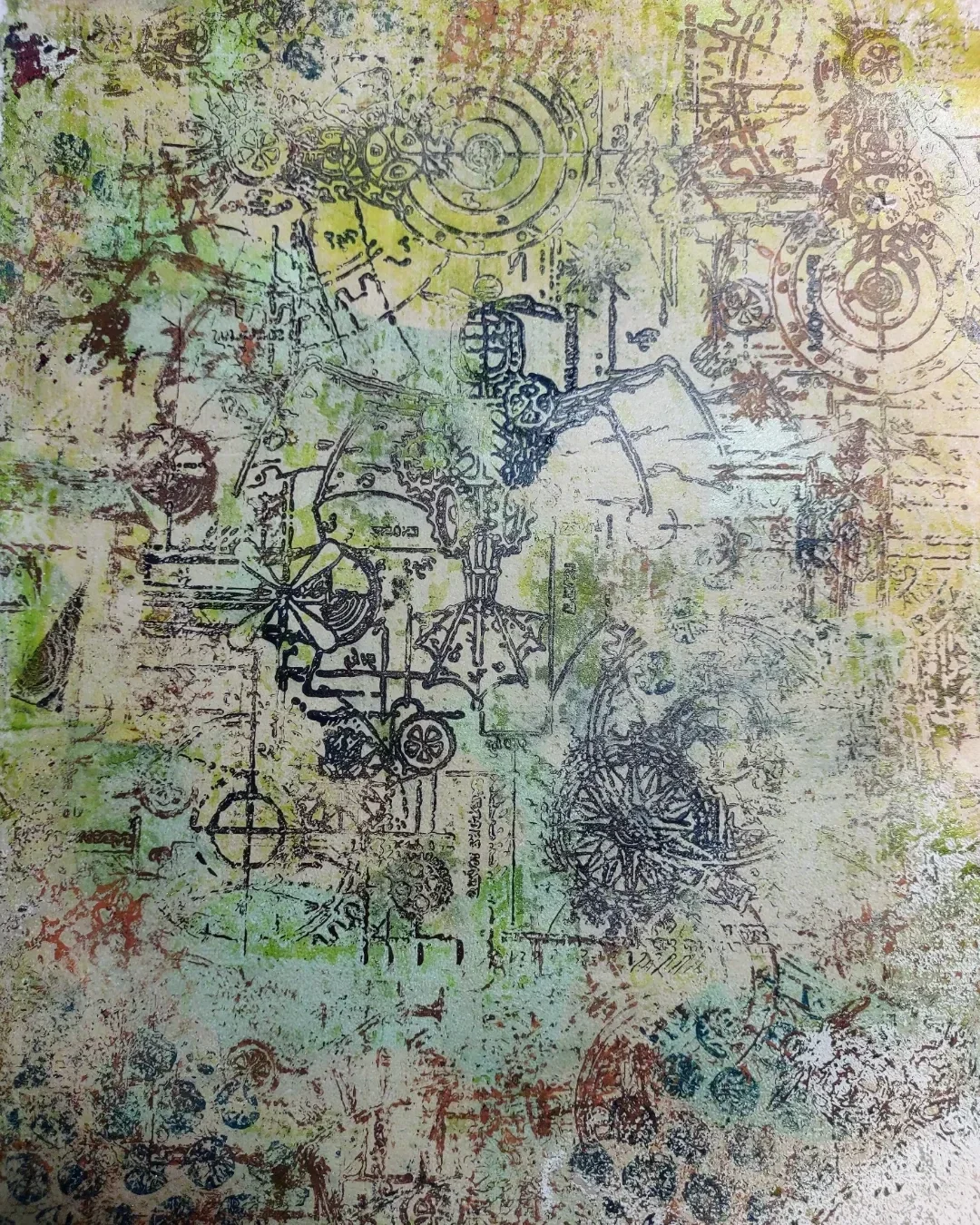 Untitled gel print ' acrylics, 9" x 12"